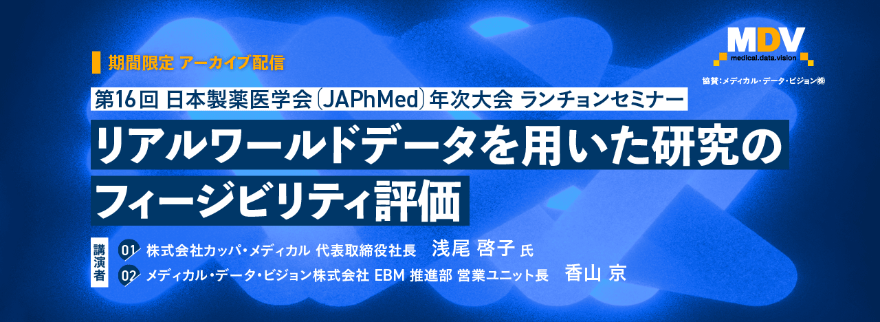 - UPDATE2025.10.23セミナーアーカイブ公開(会員限定):第16回日本製薬医学会 MDV協賛ランチョンセミナー「リアルワールドデータを用いた研究のフィージビリティ評価」