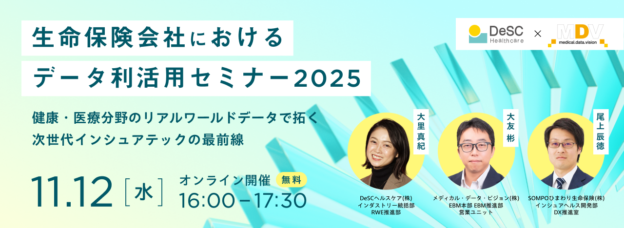 - EVENT2025.10.20【MDV・DeSC共催】生命保険会社におけるデータ利活用セミナー 11月12日(水)オンライン開催