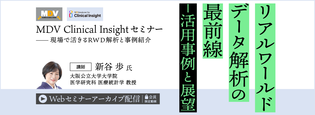 過去の一覧- UPDATE2025.10.24セミナーアーカイブ公開(会員限定):MDV主催 Clinical Insightセミナー~現場で活きるRWD解析と事例紹介~