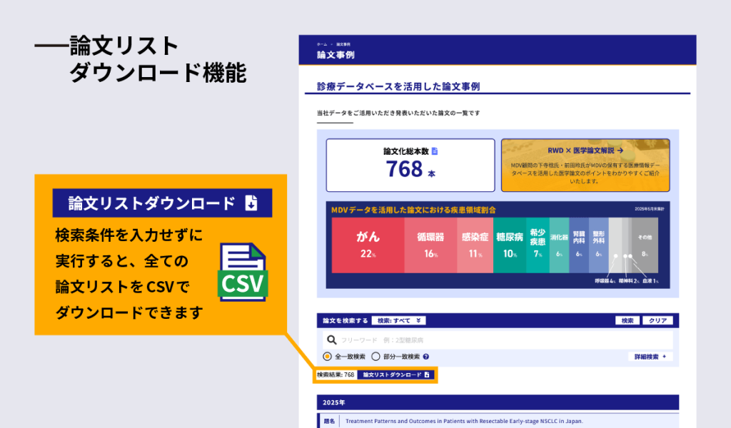 このたび、論文事例ページにおいて、MDVのデータを活用して発表された論文リストをダウンロードできる機能を追加しました。