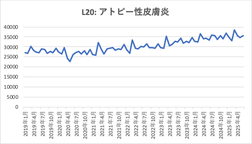 デュピルマブは2019年以来、一貫して処方患者数が増加しており、特に2023年から伸びが加速しており、標準的治療薬として広く臨床現場に浸透している様子がうかがえる。