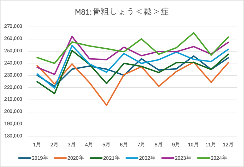 2. 骨粗鬆症(M81)患者数の年別比較(月別推移)
