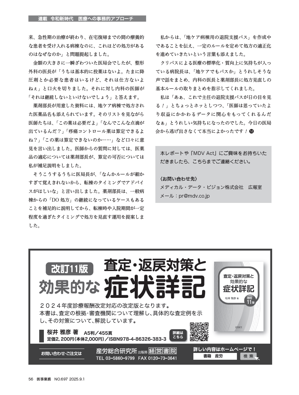 ■媒 体 名:「医事業務」 2025年9月1日発行
