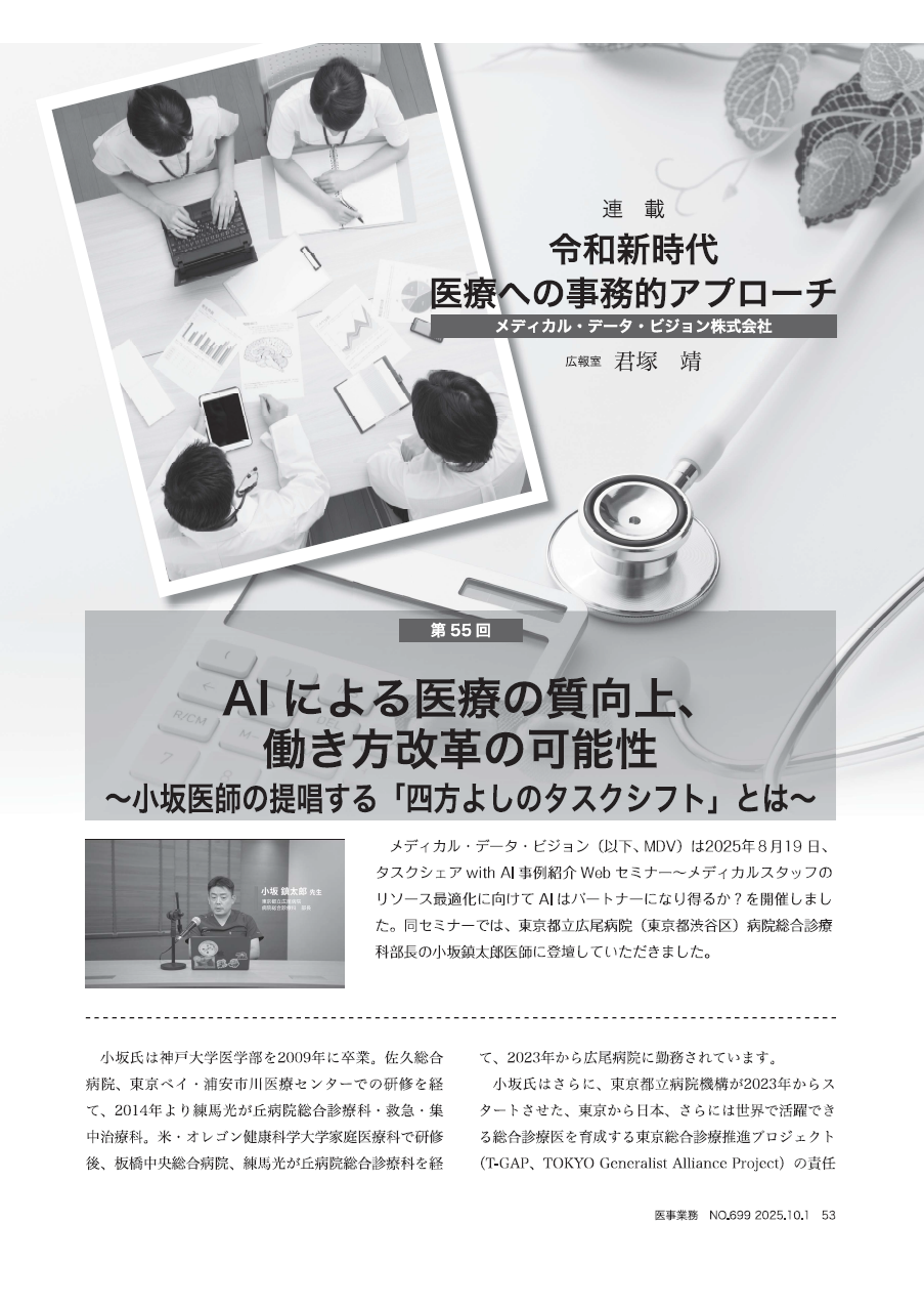 ■見 出 し:AIによる医療の質向上、働き方改革の可能性~小坂医師の提唱する「四方よしのタスクシフト」とは~