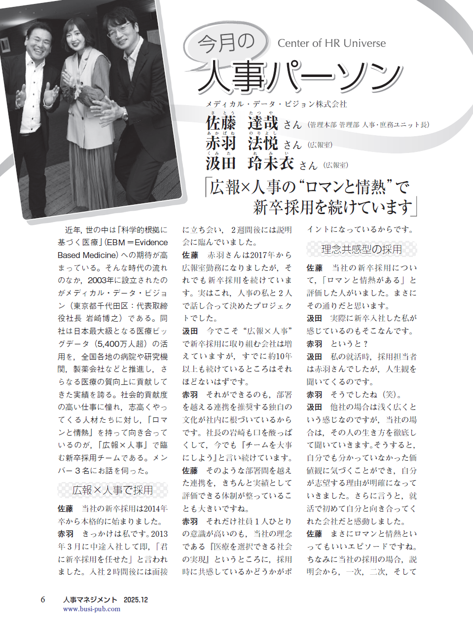 ■見 出 し:今月の人事パーソン「広報×人事の"ロマンと情熱"で新卒採用を続けています