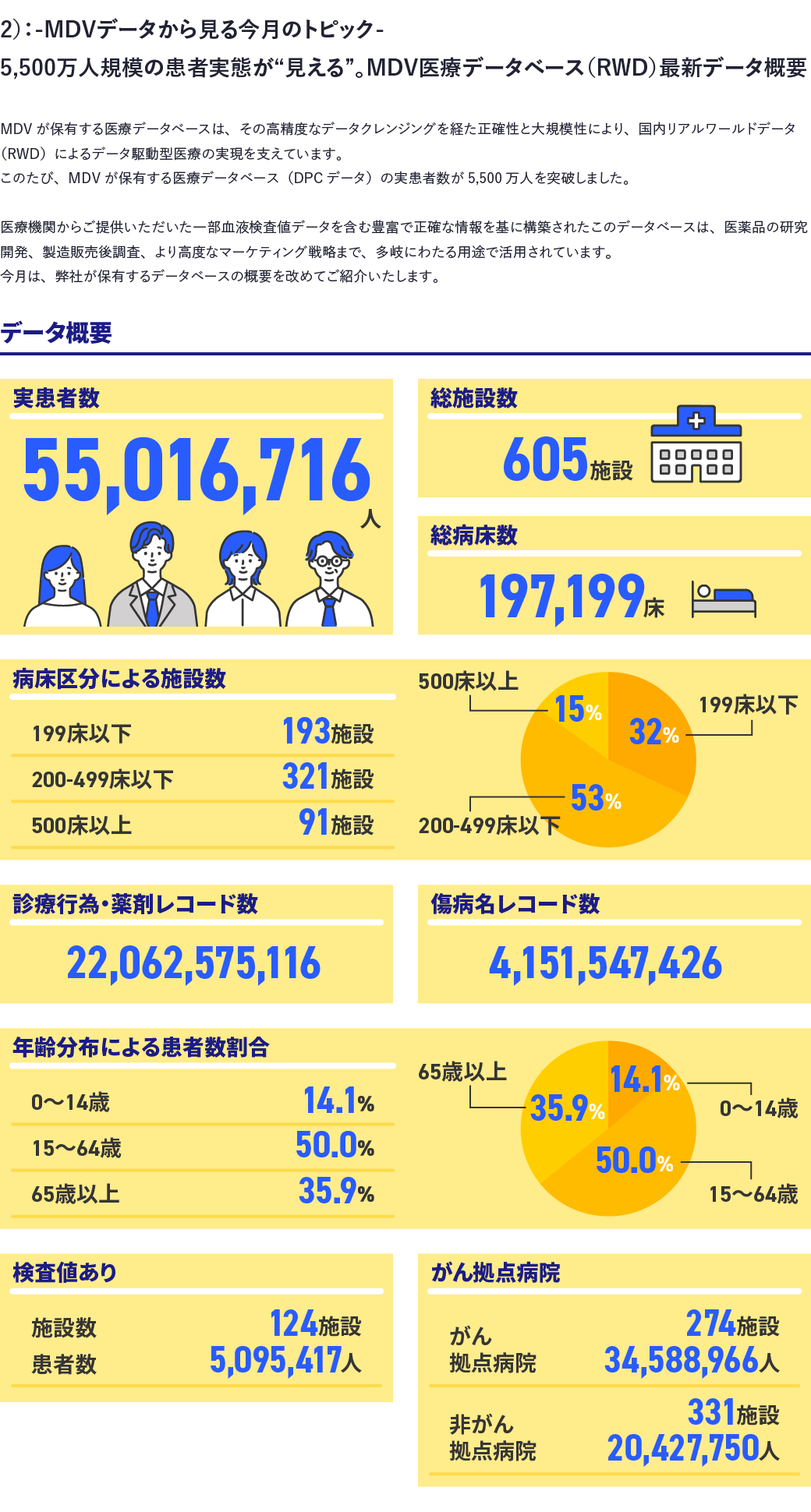医療情報のネットワーク化を推進するメディカル・データ・ビジョン株式会社(本社:東京都千代田区 代表取締役社長:岩崎 博之)は、当社が保有する大規模診療データベースについて、2025年12月末集計で5,502万人となりましたことをお知らせいたします。
