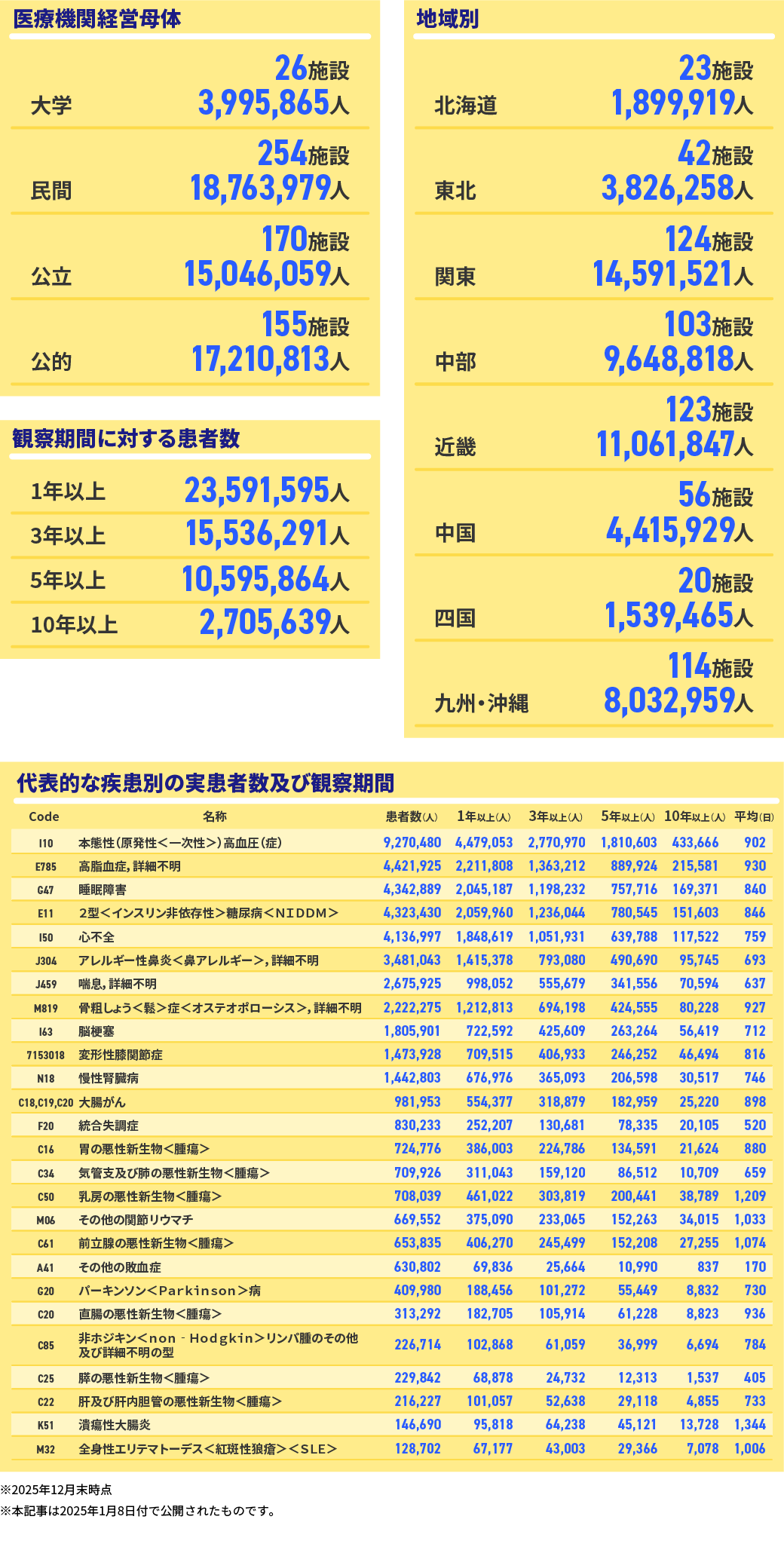診療データベース概況(2025年12月末日)実患者数5,502万人2026年1月8日