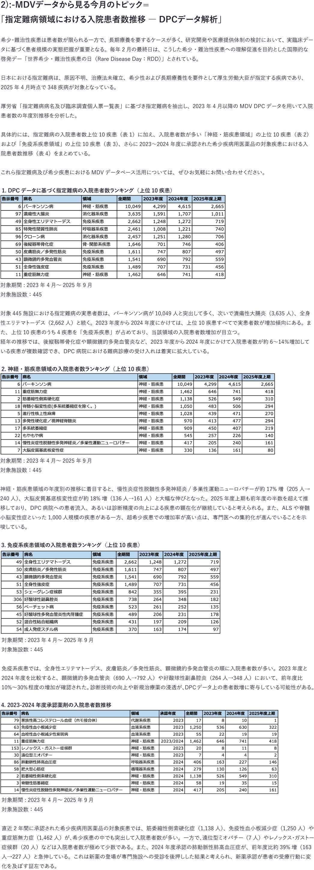 MDV Data レポート